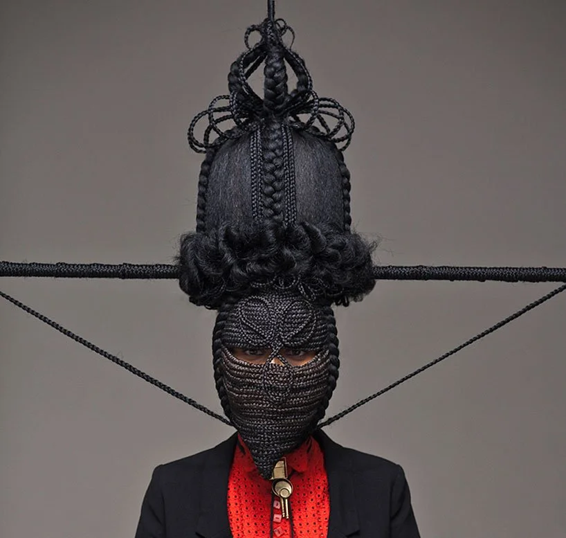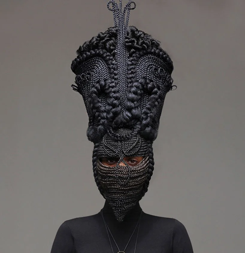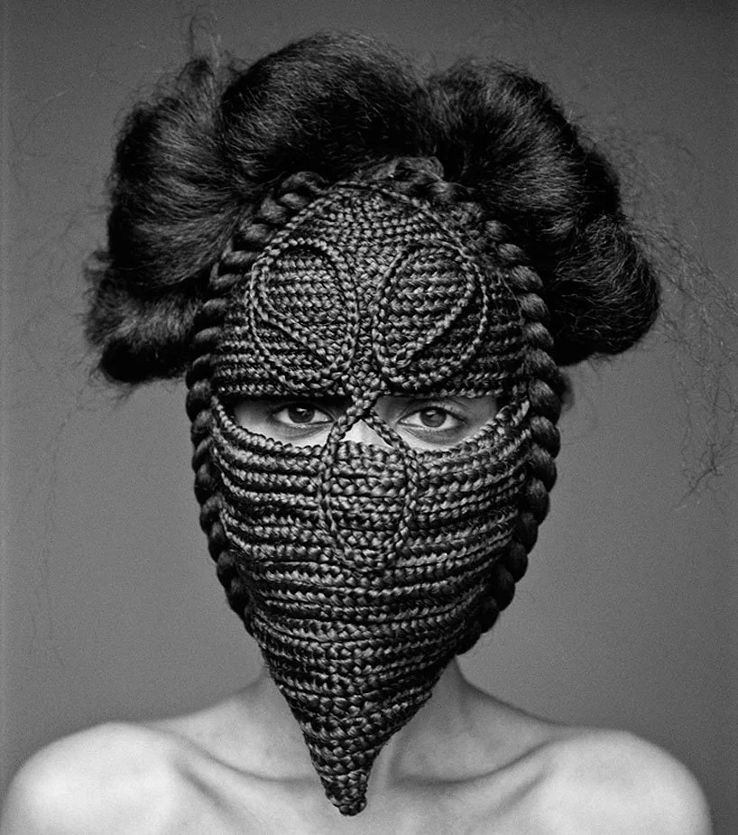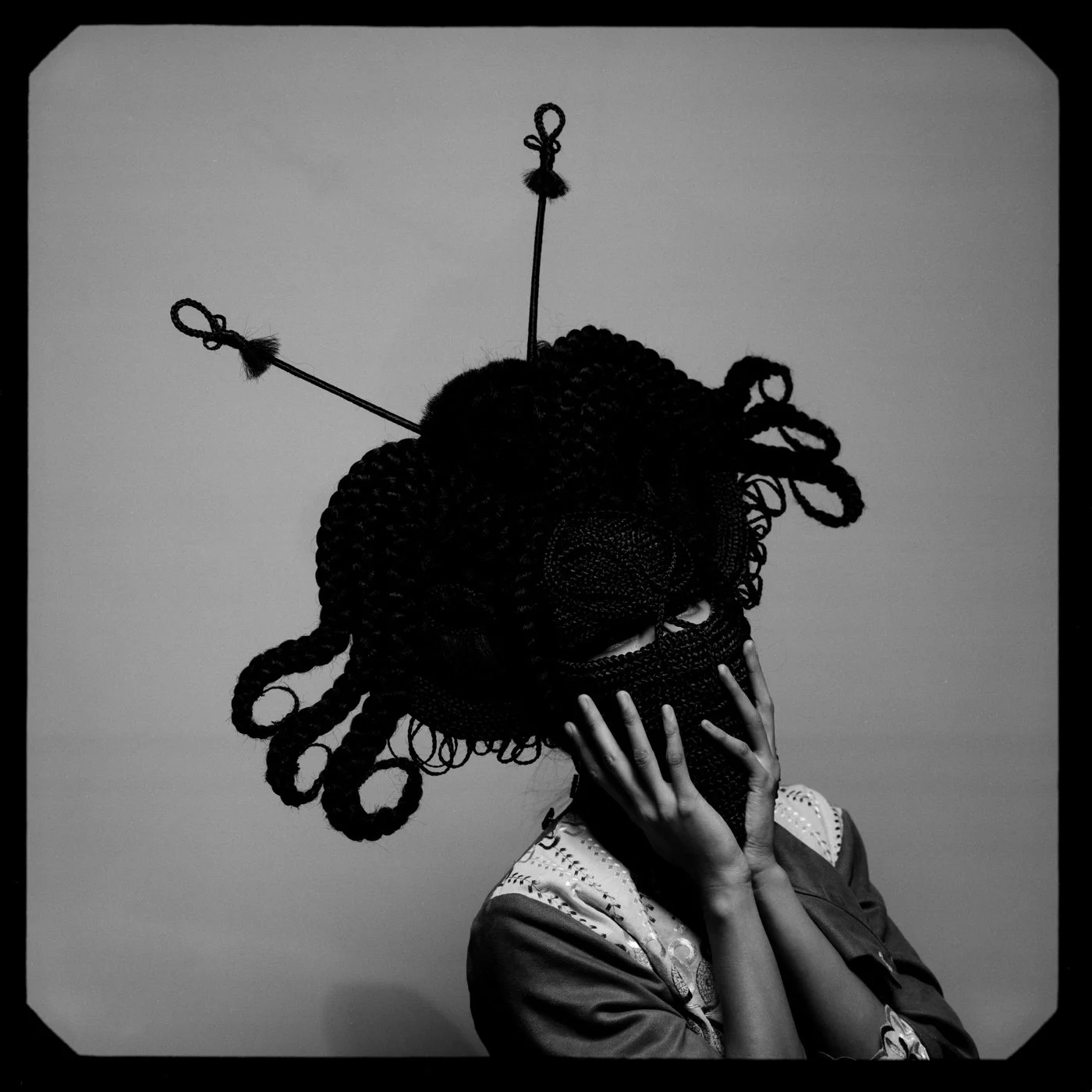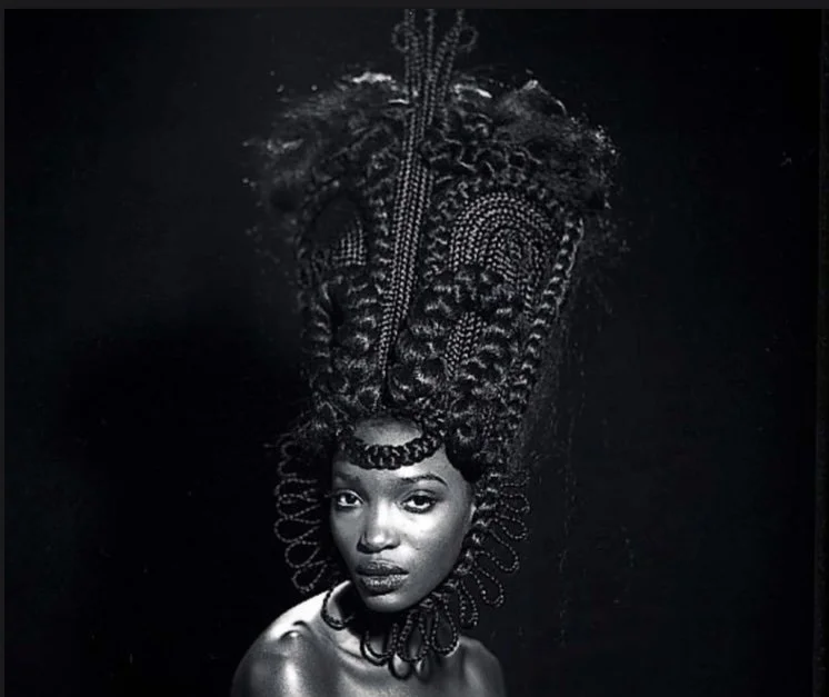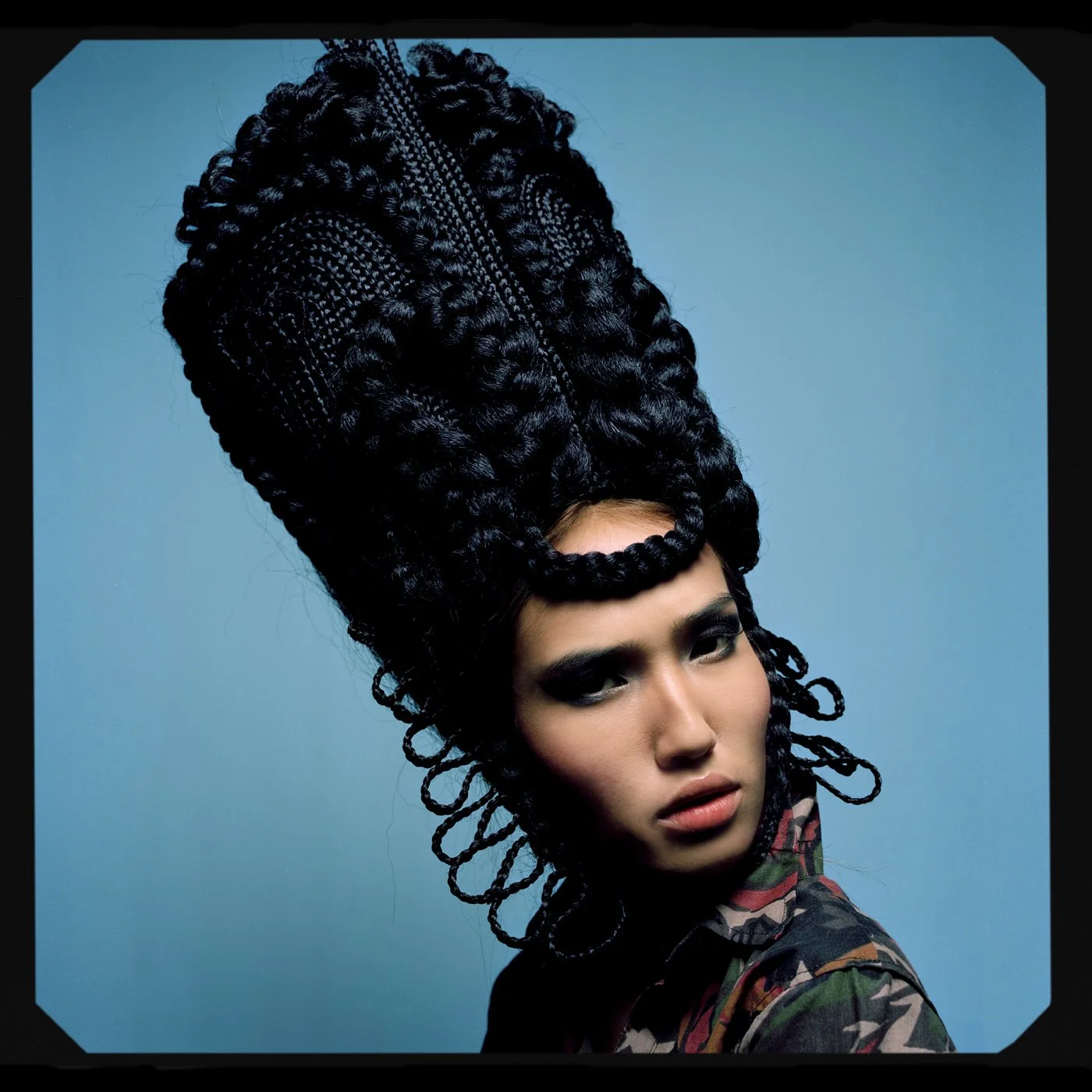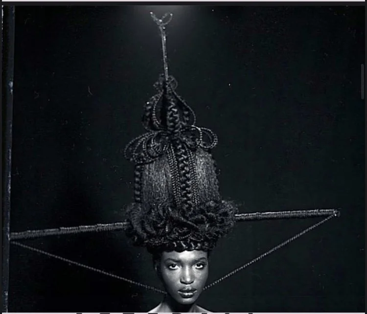 In a rare return behind the lens, here the late Kwame Brathwaite photographs Joanne Petit-Frere, adorned in her sculptural works—Ritual Choker worn as Crown and Rebecca Succubus worn as Bustier, originally commissioned for the Sundance-winning short film Hair Wolf. Captured during an interview for The New Yorker and in the weeks leading up to her debut in Hair Wars at MoMA PS1—a revival of the legendary tradition initiated by David Humphries—this portrait marked a turning point in both process and path.