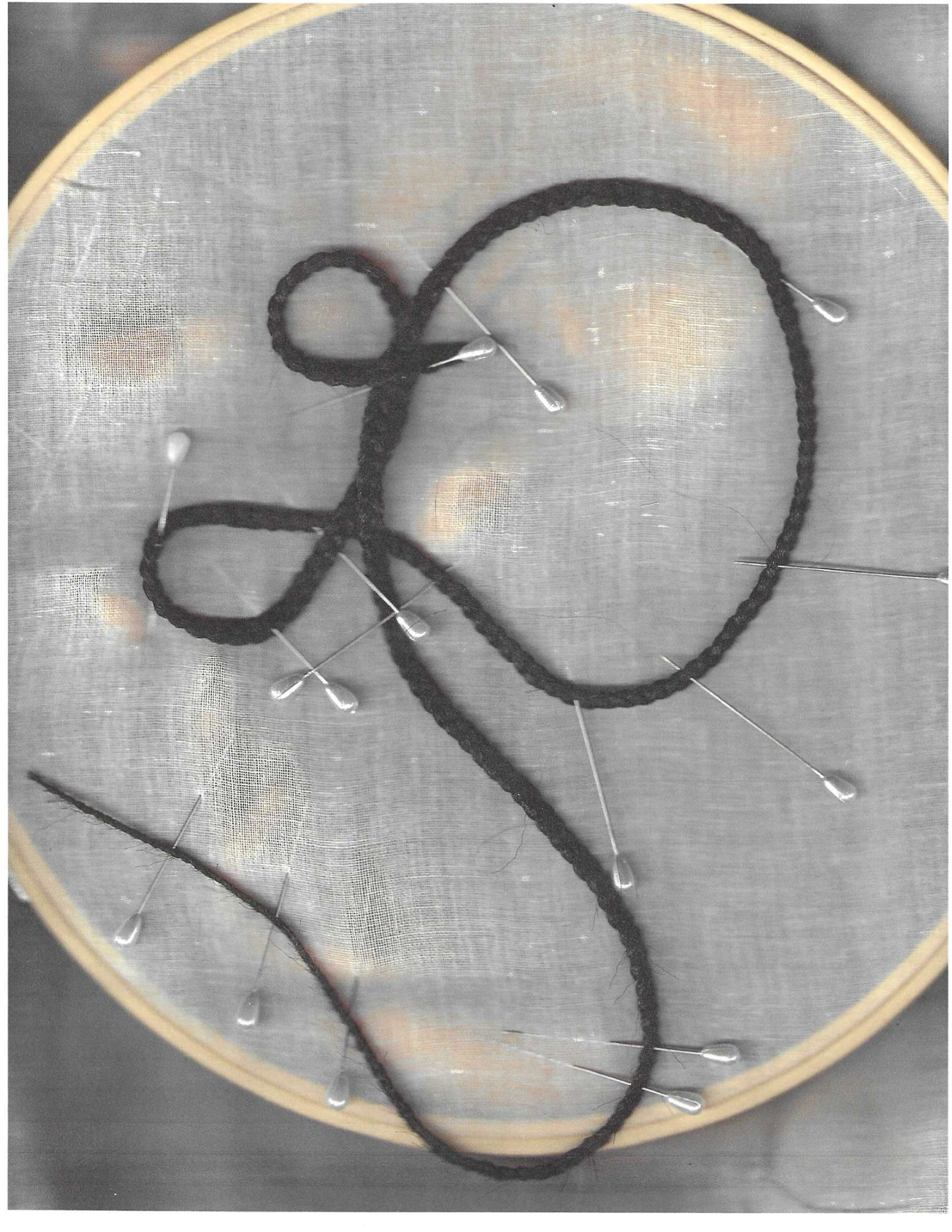 In this process study for BRAIDWOMAN™, braid is pinned into provisional architecture. The hand steadies the structure, as cord, tension and gesture map- the early formation of a larger sculptural inquiry. Suspended between blueprint and ritual, the work marks the intimate scale, from which monument emerges …